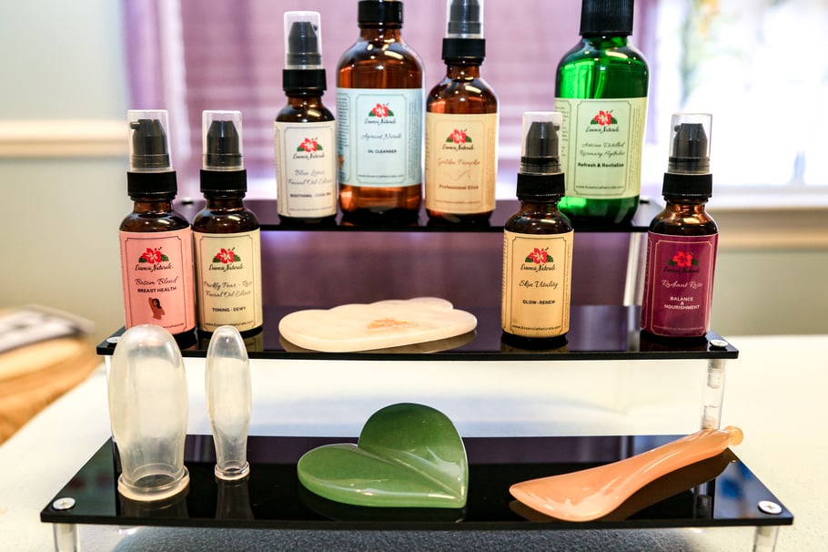 Gua Sha - Facial rejuvenation massage is a great example of a natural facelift. We use Gua Sha, facial cupping, and Thai herbal facial poultices to relax tense muscles, increase microcirculation, reduce inflammation and enhance the overall appearance of the skin relaxing tense muscles with facial rejuvenation massage is a winning combination for achieving an overall revitalizing effect. You can expect to see wrinkles diminishing and lines becoming smoother, providing you with that youthful look. Moving lymphatic fluid helps the body to remove toxins and gives your face a depuffed appearance, making it appear brighter and younger!